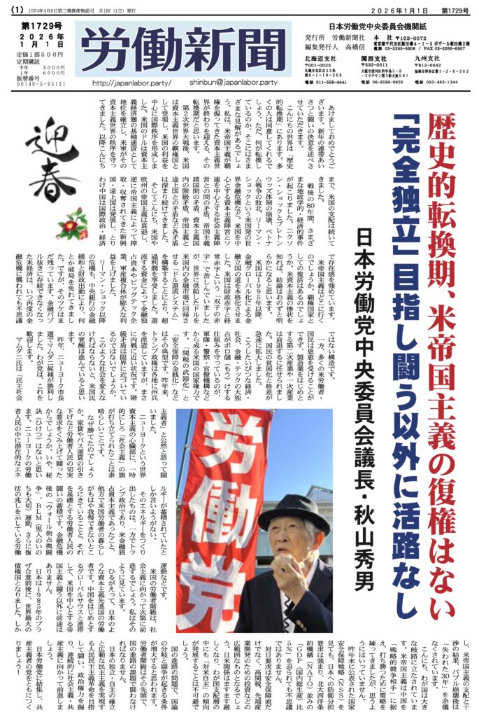 ・歴史的転換期、米帝国主義の復権はない 「完全独立」目指し闘う以外に活路なし(日本労働党中央委員会議長 秋山秀男)